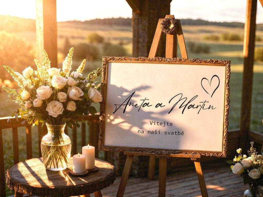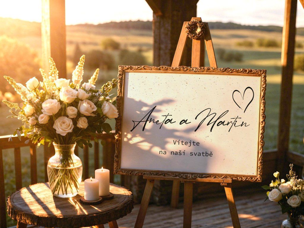 💡 Doporučení: Papírovou ceduli doporučujeme vložit do vkusného rámu nebo ji klipy připevnit na pevnou desku na malířském stojanu. Po svatbě si ji můžete zarámovat jako památku na váš velký den.
