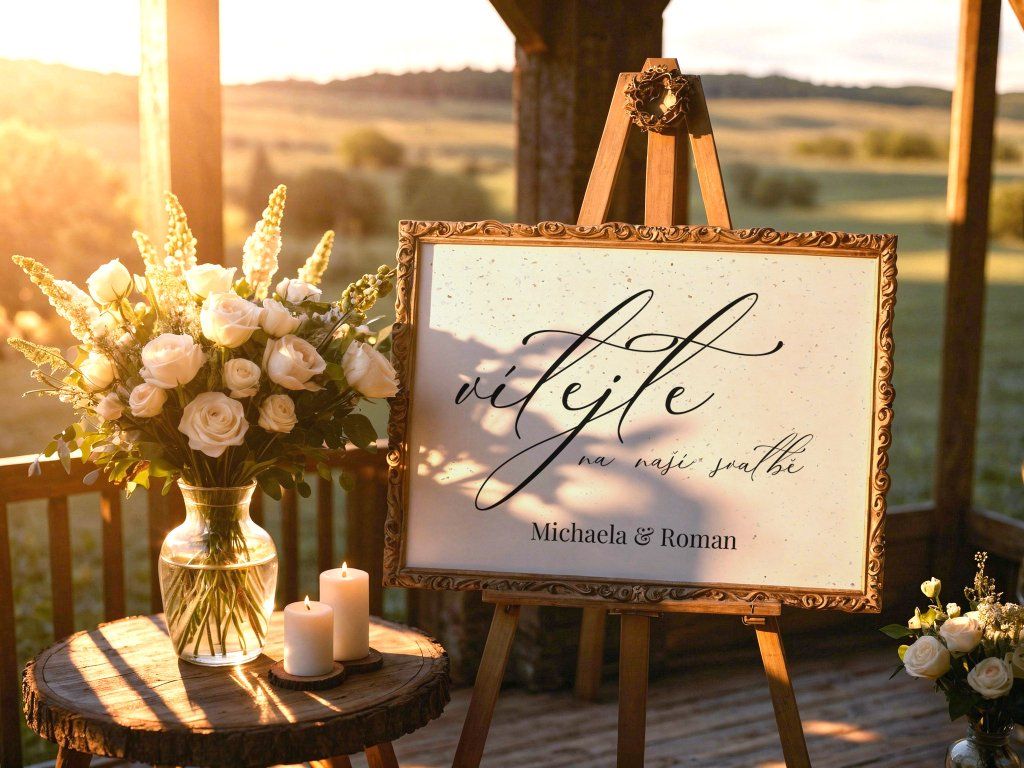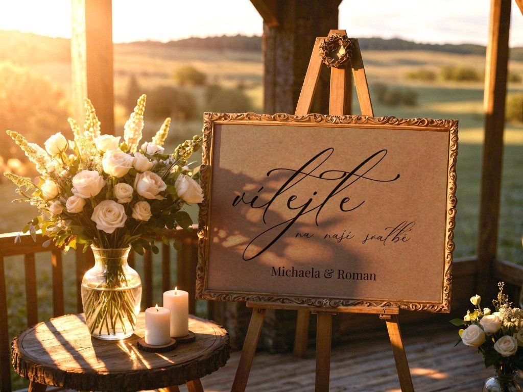 💡 Doporučení: Papírovou ceduli doporučujeme vložit do vkusného rámu nebo ji klipy připevnit na pevnou desku na malířském stojanu. Po svatbě si ji můžete zarámovat jako památku na váš velký den.