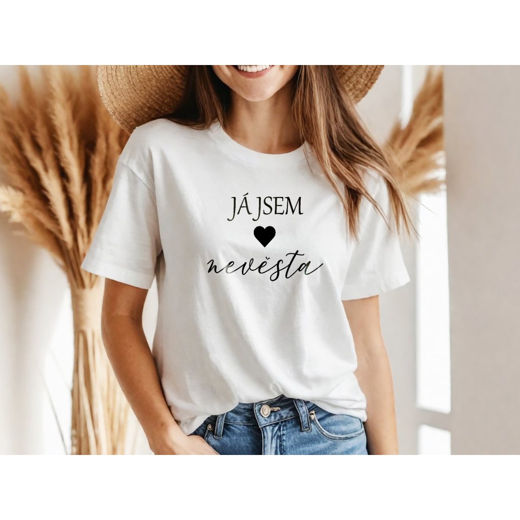 Naše svatební tričko je ideální volba! Elegantní, pohodlné a s láskou navržené – přesně takové, jaké si zasloužíte. Motiv "Bride", "Nevěsta", nebo třeba jméno a datum svatby? Vše připravíme na míru.