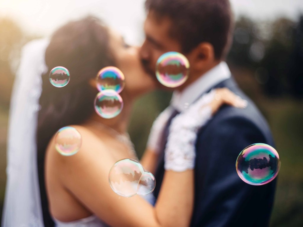 📷 Dokonalé fotografie: Bublinky vytvoří na fotografiích magickou a romantickou atmosféru, kterou klasické házení rýže nenahradí.