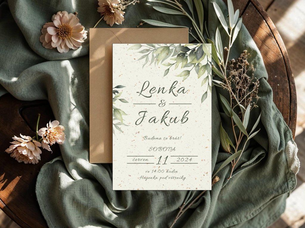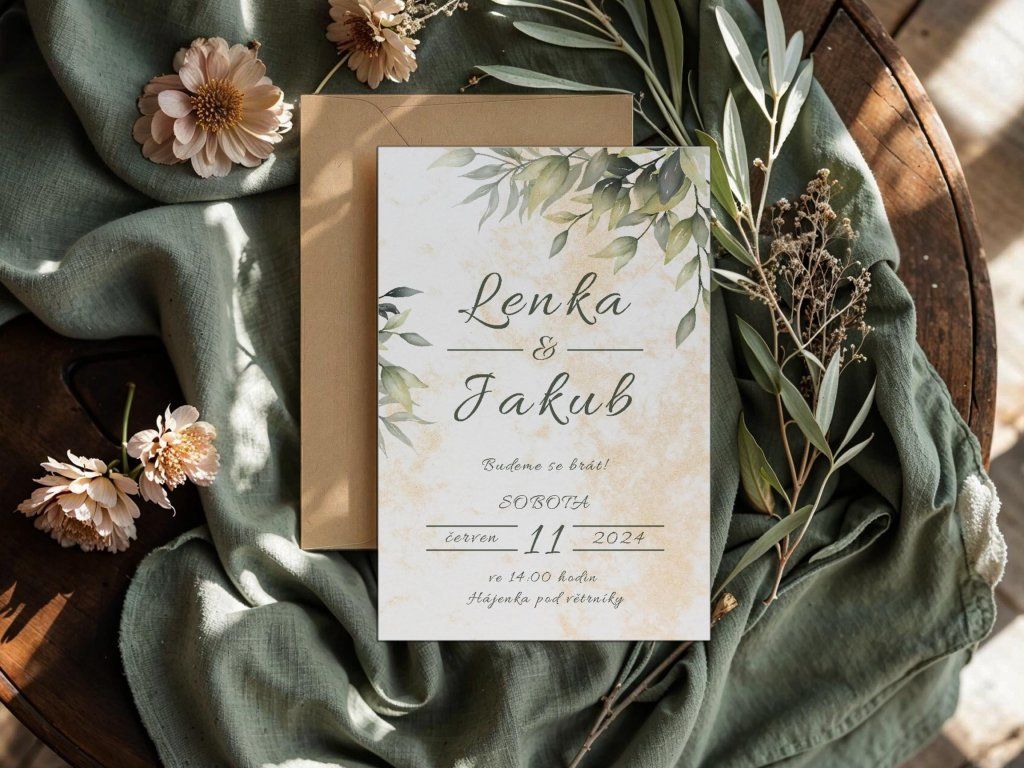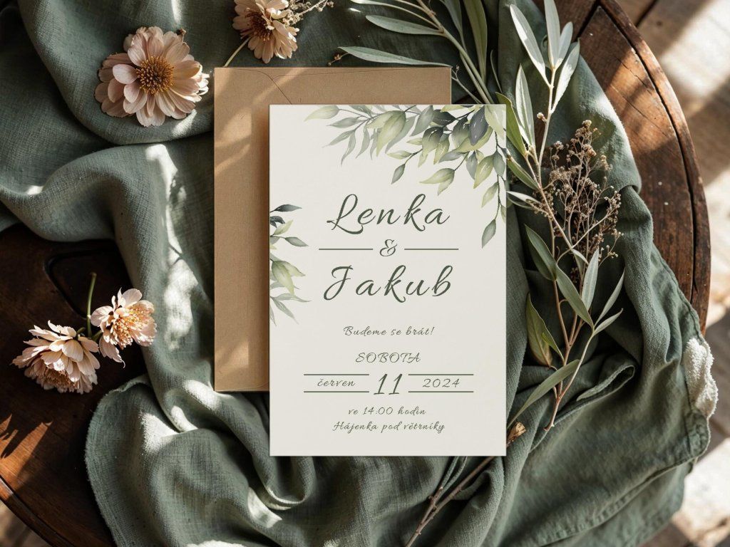 - 🌿 Kompletní sladění – na míru vytvoříme i pozvánky, jmenovky či menu.