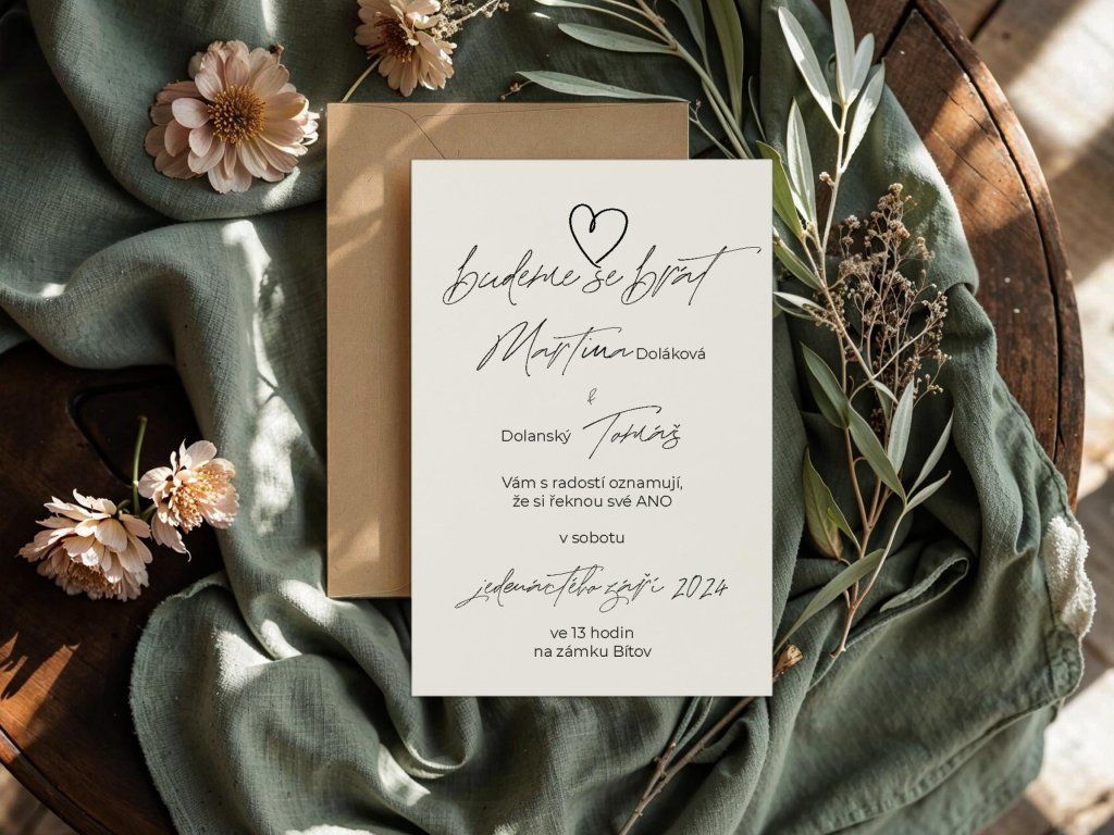 - 🌿 Kompletní sladění – na míru vytvoříme i pozvánky, jmenovky či menu.
