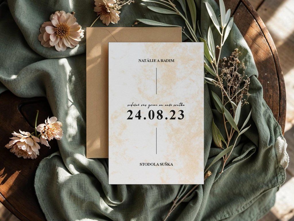 Luxusní svatební oznámení na prémiovém grafickém papíře (220–300 g/m?) vyniká precizním tiskem a elegantním vzhledem. ❤️ Vyberte si design, který dokonale podtrhne styl vaší svatby.