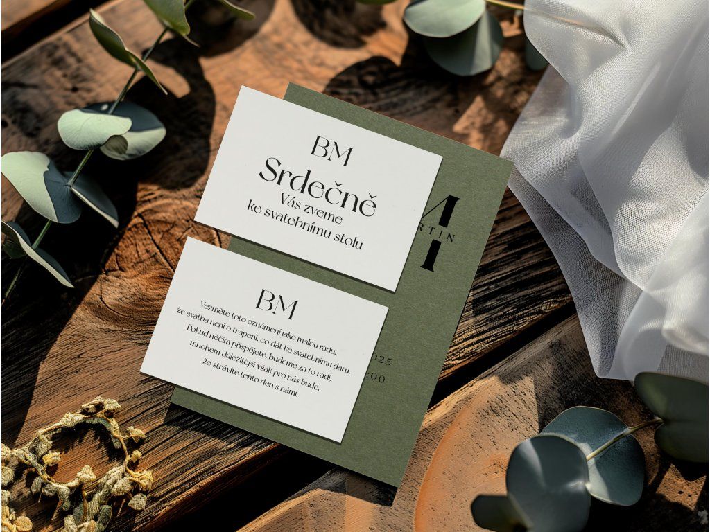 Luxusní svatební oznámení na prémiovém grafickém papíře (220–300 g/m?) vyniká precizním tiskem a elegantním vzhledem. ❤️ Vyberte si design, který dokonale podtrhne styl vaší svatby.