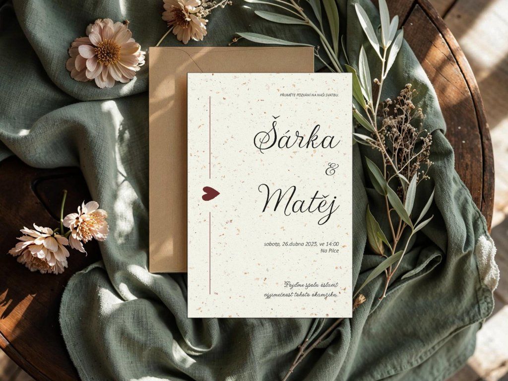 Luxusní svatební oznámení na prémiovém grafickém papíře (220–300 g/m?) vyniká precizním tiskem a elegantním vzhledem. ❤️ Vyberte si design, který dokonale podtrhne styl vaší svatby.