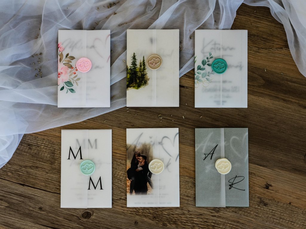 Obálku vám rádi zkompletujeme ozdobnou pečetí nebo designovou samolepkou, která ladí s vaším oznámením.