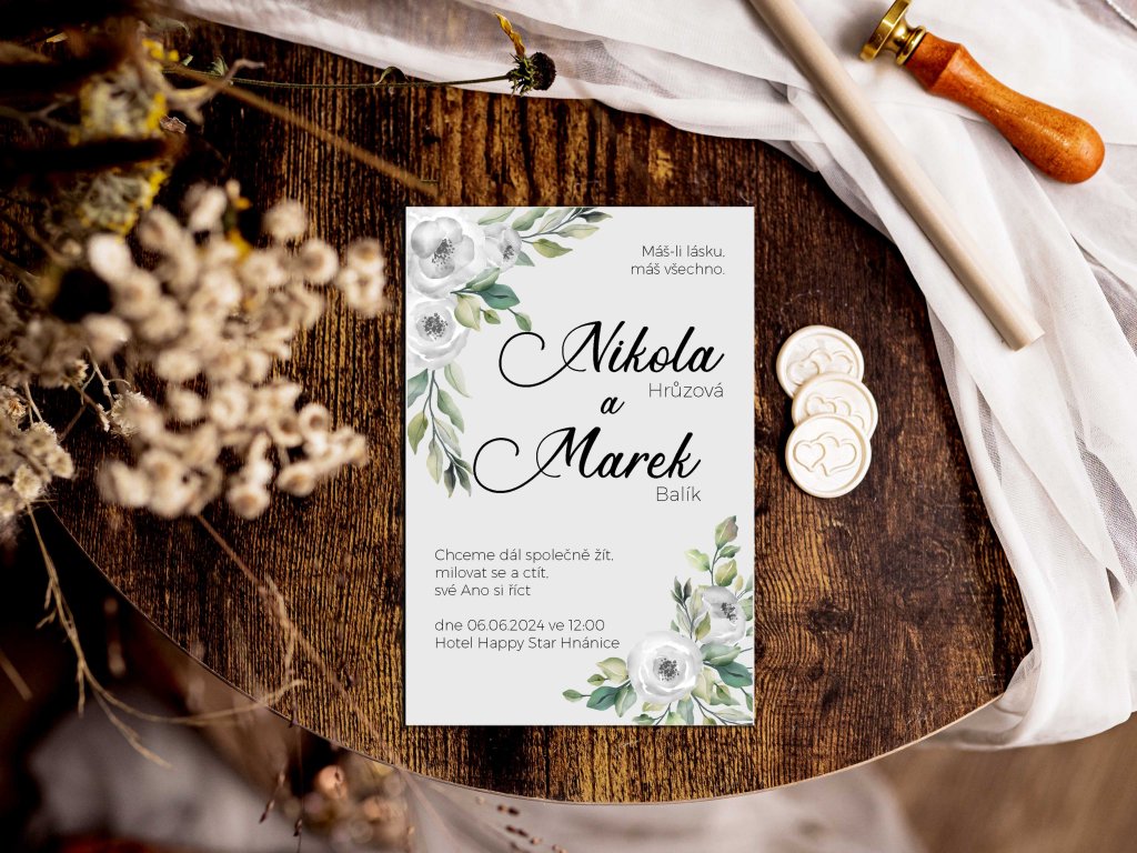 Všechny svatební tiskoviny vám sladíme do jednotného stylu – oznámení, menu, jmenovky, zasedací pořádek i další doplňky. Díky tomu bude celý svatební den působit krásně harmonicky a promyšleně.