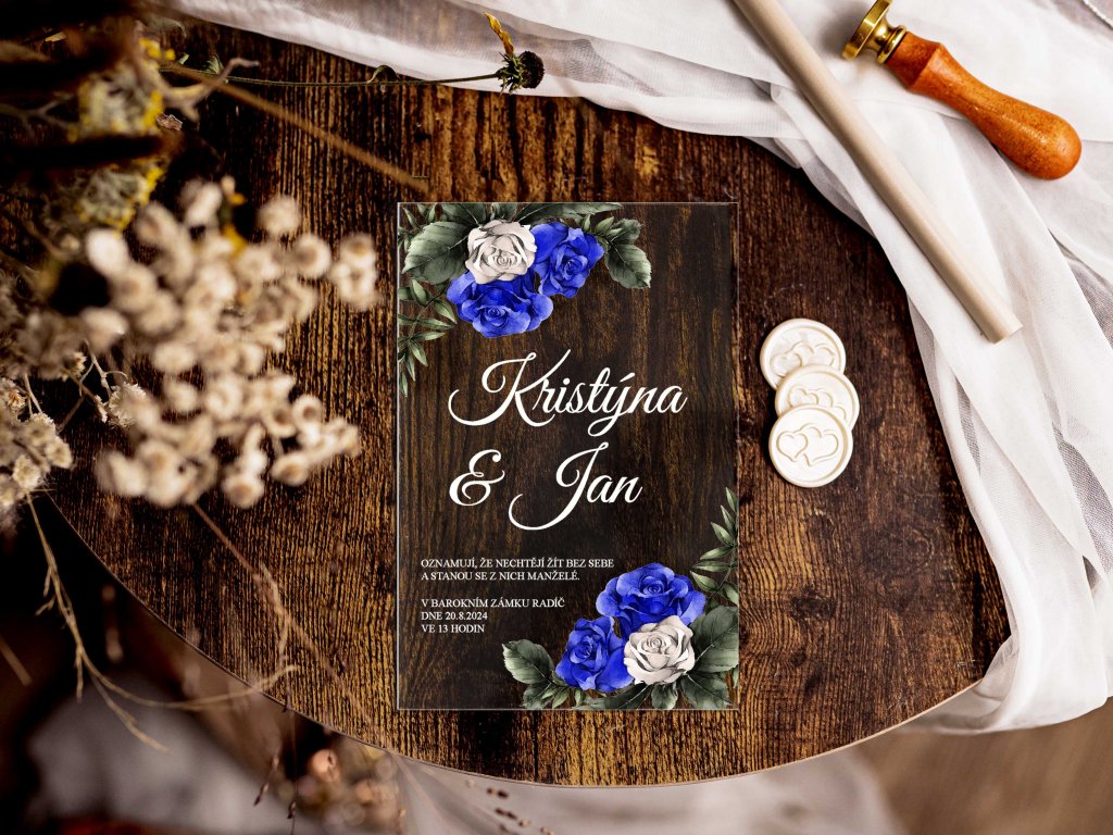 Plexi svatební oznámení tiskneme na profesionální UV tiskárně na pevné plexisklo o tloušťce 2–3 mm. UV potisk zajišťuje vysokou kvalitu, syté barvy a dlouhou odolnost.