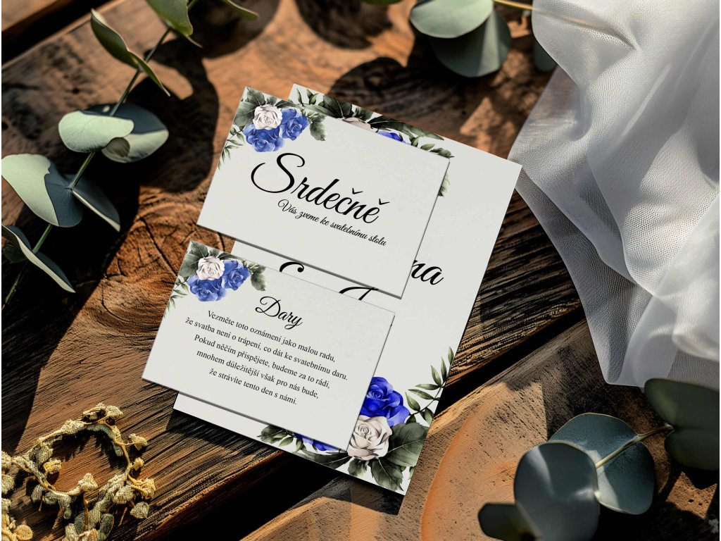 Doporučujeme zakoupit také obálky, kartičky s pozvánkou ke svatebnímu stolu, kartičku se svatebními dary nebo svatební knihu.