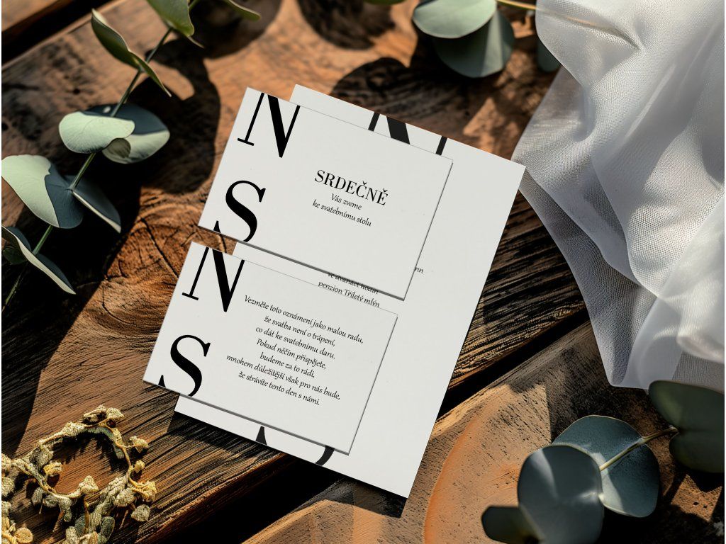 Všechny svatební tiskoviny vám sladíme do jednotného stylu – oznámení, menu, jmenovky, zasedací pořádek i další doplňky. Díky tomu bude celý svatební den působit krásně harmonicky a promyšleně.