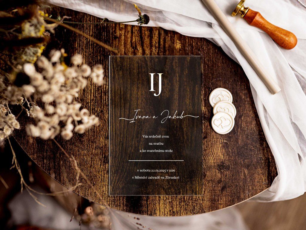Plexi svatební oznámení tiskneme na profesionální UV tiskárně na pevné plexisklo o tloušťce 2–3 mm. UV potisk zajišťuje vysokou kvalitu, syté barvy a dlouhou odolnost.