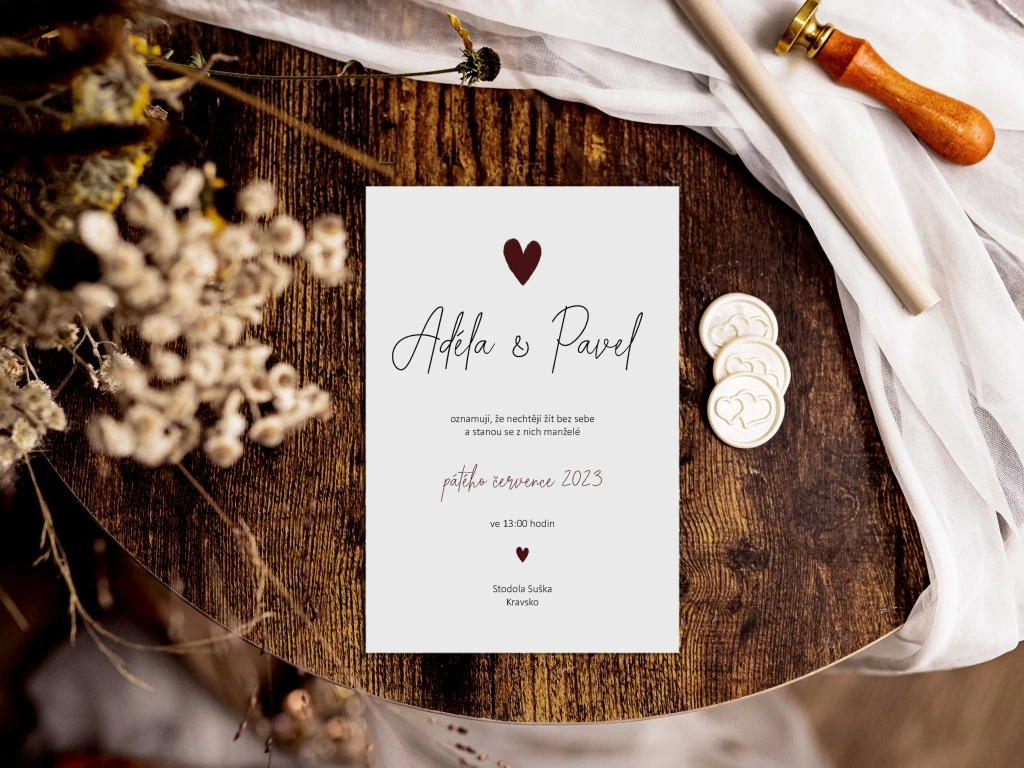 Všechny svatební tiskoviny vám sladíme do jednotného stylu – oznámení, menu, jmenovky, zasedací pořádek i další doplňky. Díky tomu bude celý svatební den působit krásně harmonicky a promyšleně.