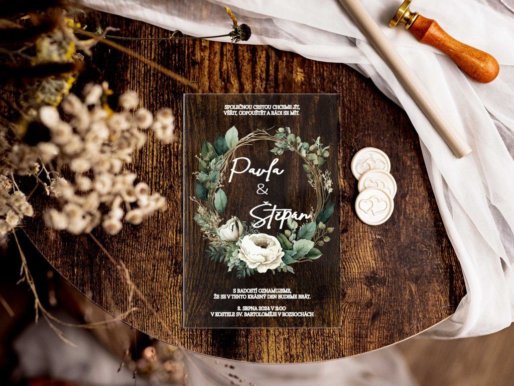 Plexi svatební oznámení tiskneme na profesionální UV tiskárně na pevné plexisklo o tloušťce 2–3 mm. UV potisk zajišťuje vysokou kvalitu, syté barvy a dlouhou odolnost.