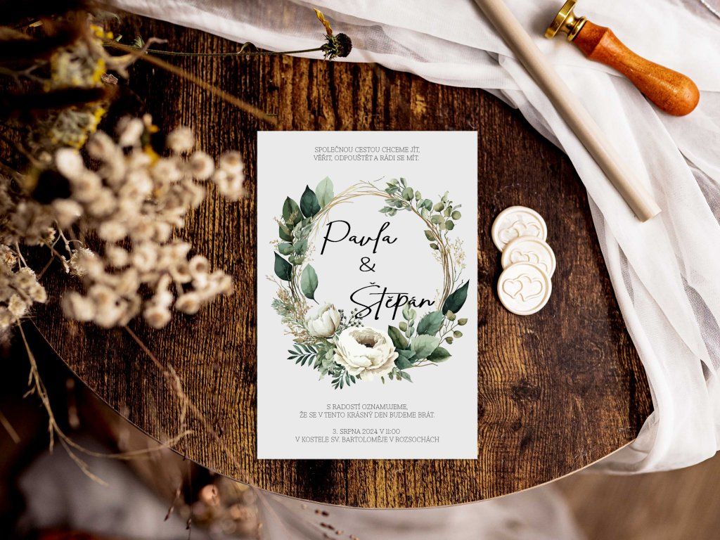 Doporučujeme zakoupit také obálky, kartičky s pozvánkou ke svatebnímu stolu, kartičku se svatebními dary nebo svatební knihu.