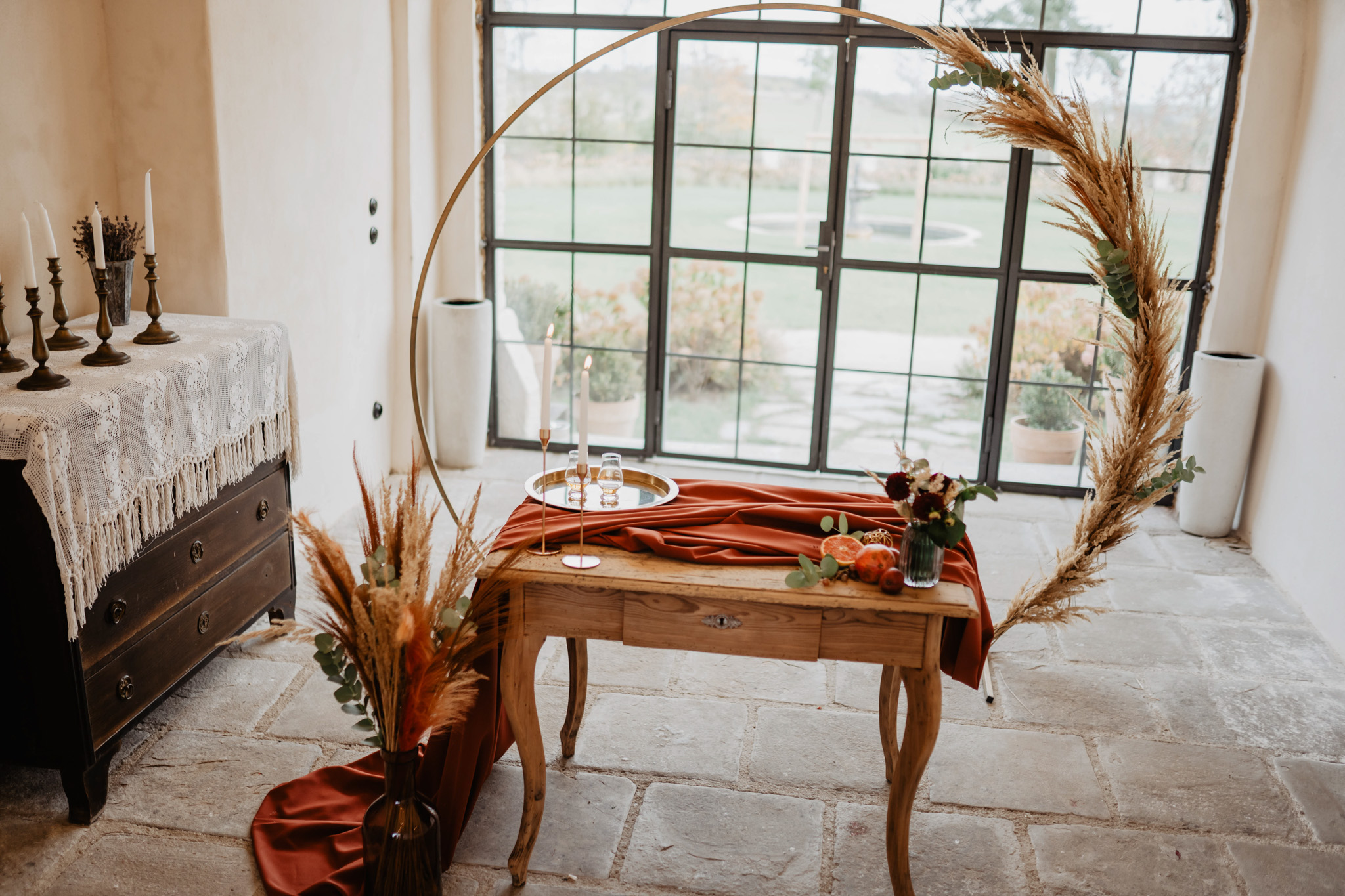 Zapůjčení vínového šifónu na ozdobení Vaší slavobrány. Délka 6 metrů.