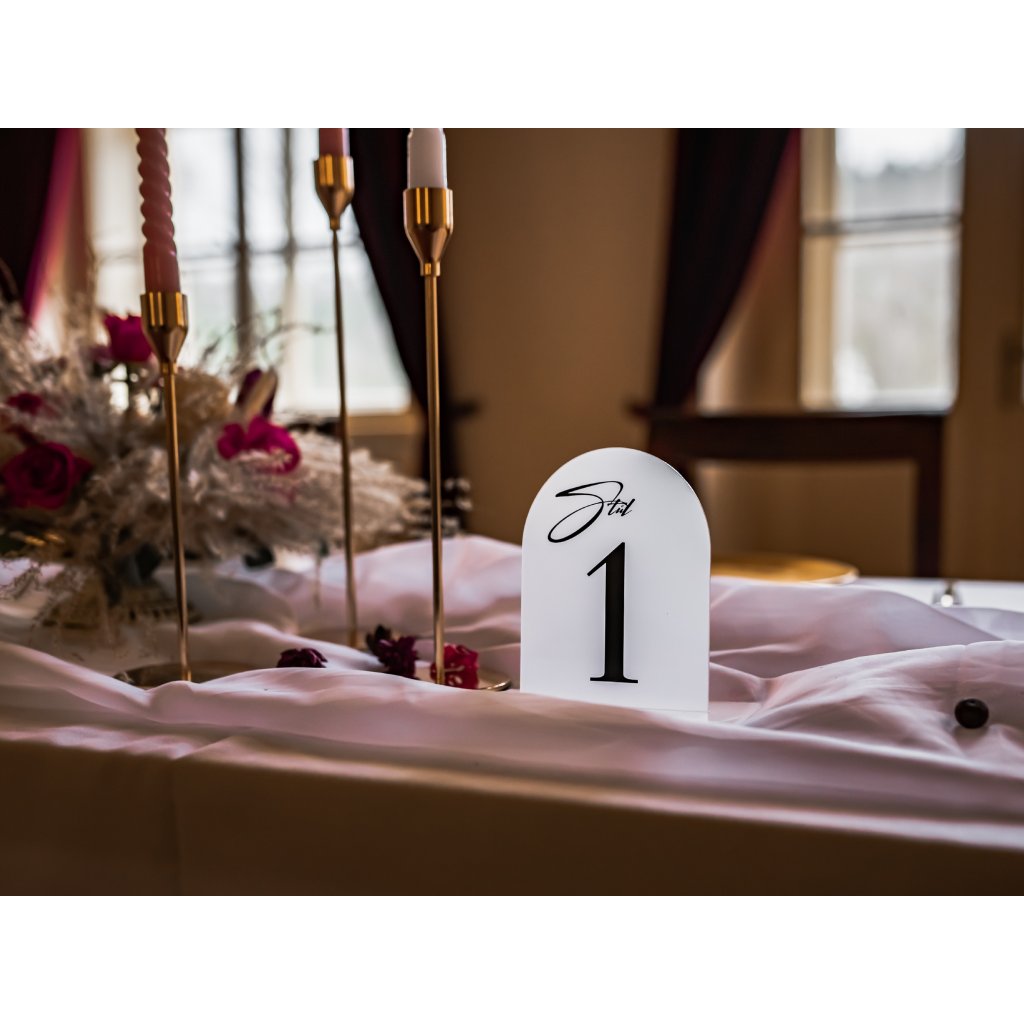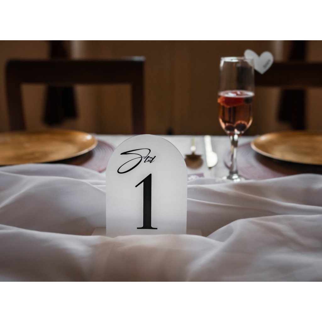 Čísla na stůl z našeho plexiskla jsou elegantní a hodí se každému svatebnímu stylu, jsou zárověň jako elegantní dekorace.