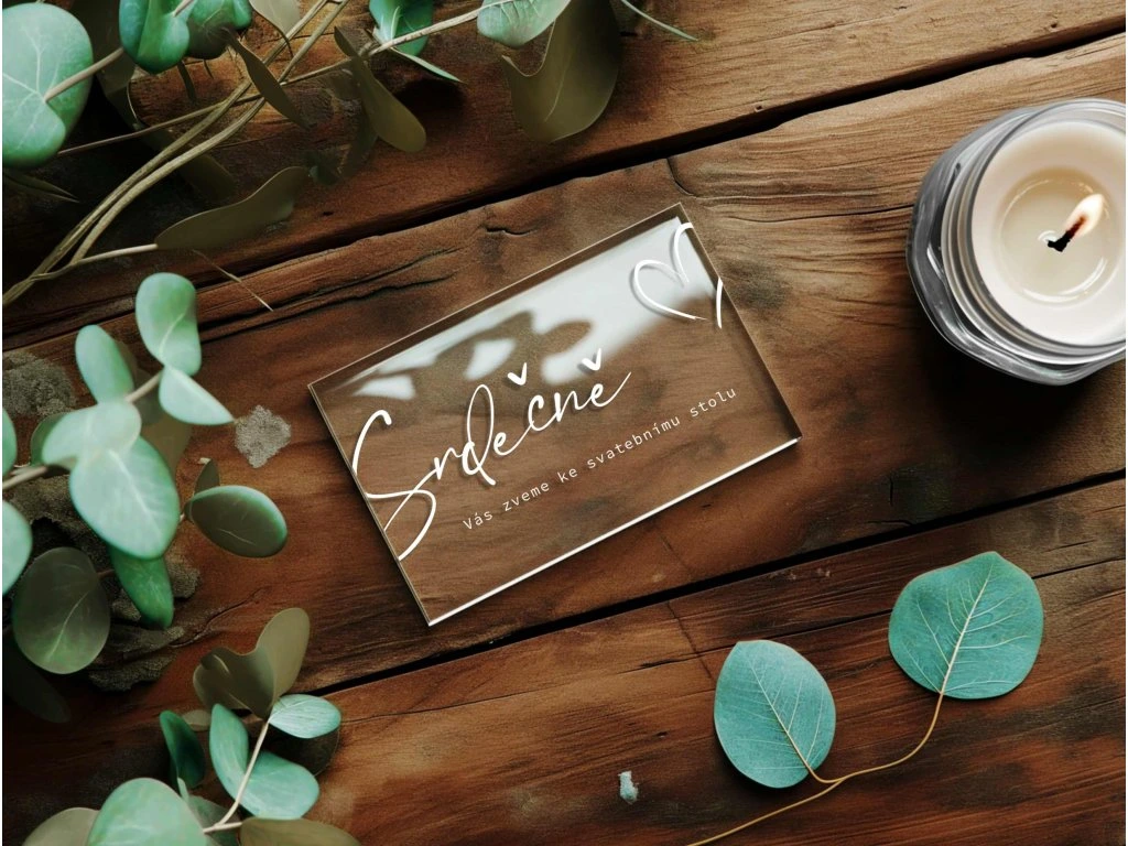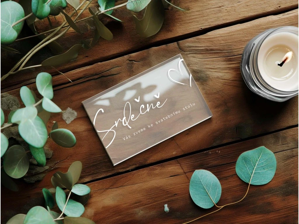 💡 Náš tip: Pro dokonalý set doporučujeme kombinovat s plexi oznámením a kartičkou o svatebních darech.