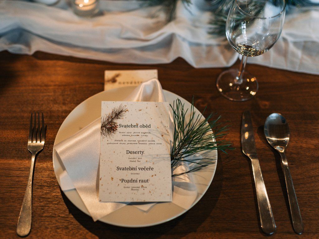 Svatební menu z papíru – elegance a styl na svatební tabuli